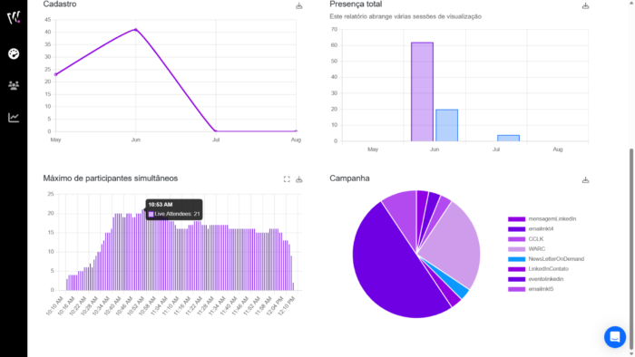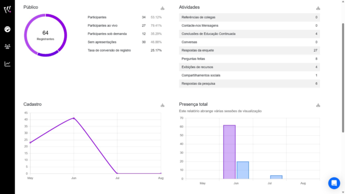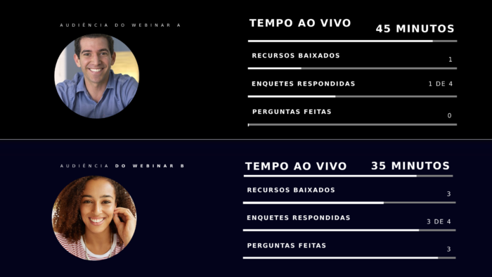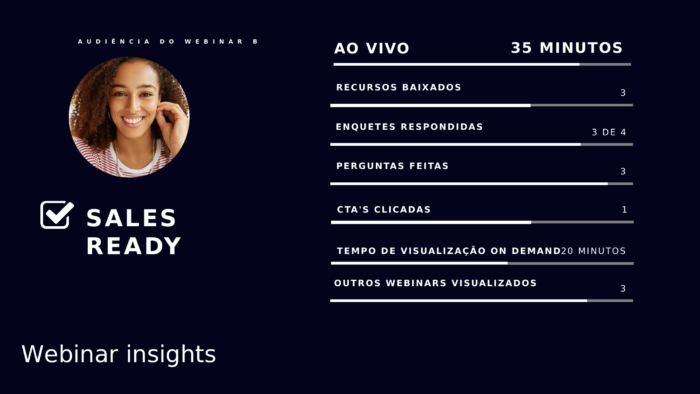 O relatório detalhado de comportamento de cada participante — quanto tempo ficou, quais perguntas fez, o que clicou, quais enquetes respondeu — é o briefing que o comercial precisa para uma abordagem altamente personalizada. “Vi que você perguntou sobre integração com CRM durante o evento” é uma abertura de conversa completamente diferente de “como posso ajudá-lo?”.